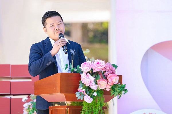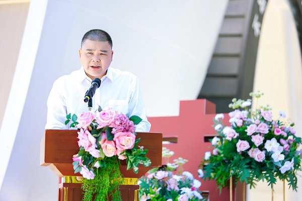 鸿客集团总裁蔡雪辉为此次活动致辞:广州客天下围绕“幸福与健康”的主题定位,结合中式与欧式现代设计,独具匠心建造了中国特色婚礼殿堂,独特的流线造型灵感来自于英文MERRY 中的“M”,融合岭南建筑和现代建筑风格相结合,已经成为中国广东一座标志性的婚礼殿堂建筑之一,同时也非常凑巧,在无意中发现,幸福婚礼殿堂正好位处海拔520米山谷中,婚礼殿堂高度也正好为13.14米,正好我们的婚礼殿堂,背靠山面朝我们的母亲河——流溪河,正好映衬一句美丽的爱情,‘海誓山盟,天长地久’,相信在这里结婚的新人都能够收获,一生一世的爱人并且天长地久。
